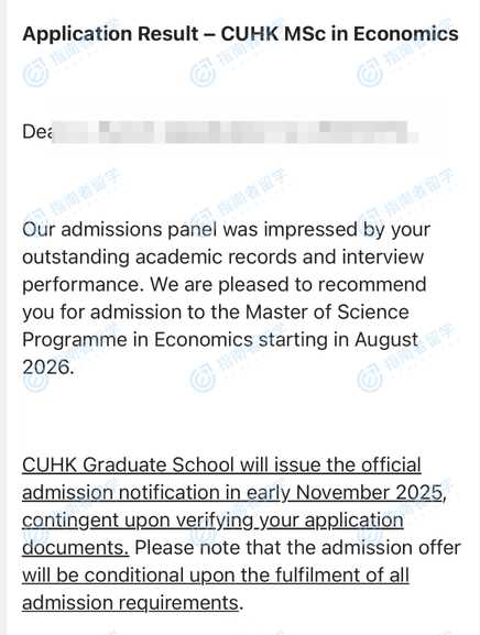 香港中文大學(xué)經(jīng)濟(jì)學(xué)理學(xué)碩士研究生offer一枚