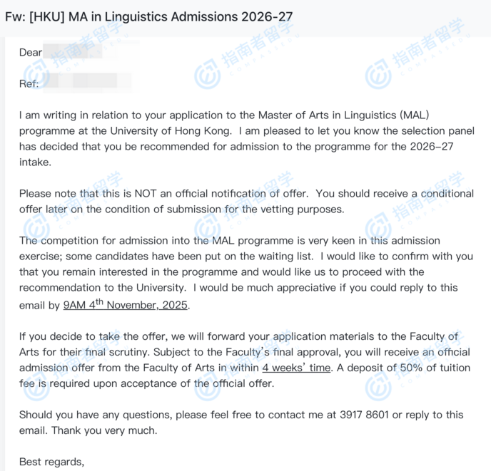 香港大學(xué)語(yǔ)言學(xué)文學(xué)碩士研究生offer一枚