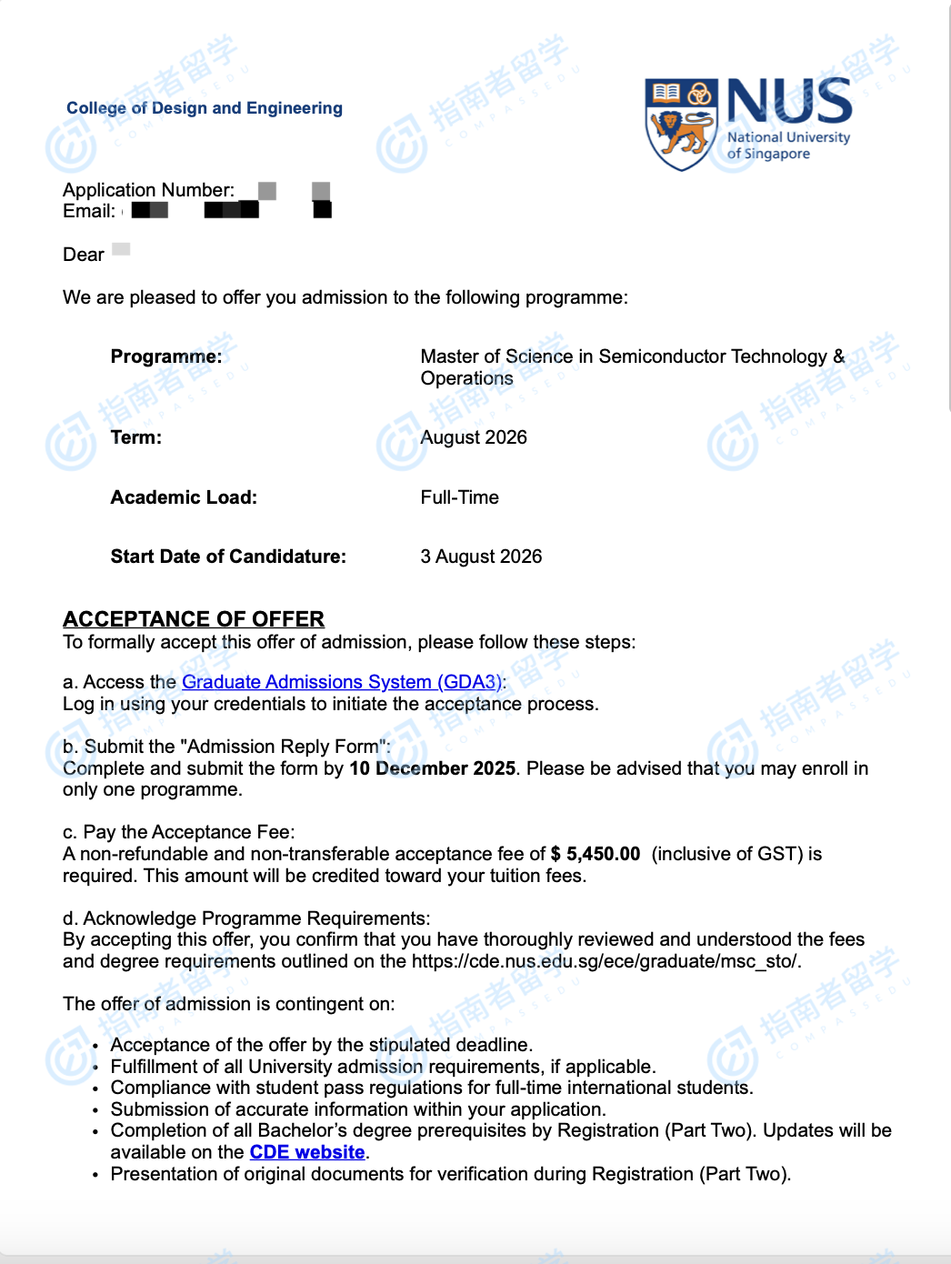 新加坡國(guó)立大學(xué)半導(dǎo)體技術(shù)與運(yùn)作理學(xué)碩士研究生offer一枚
