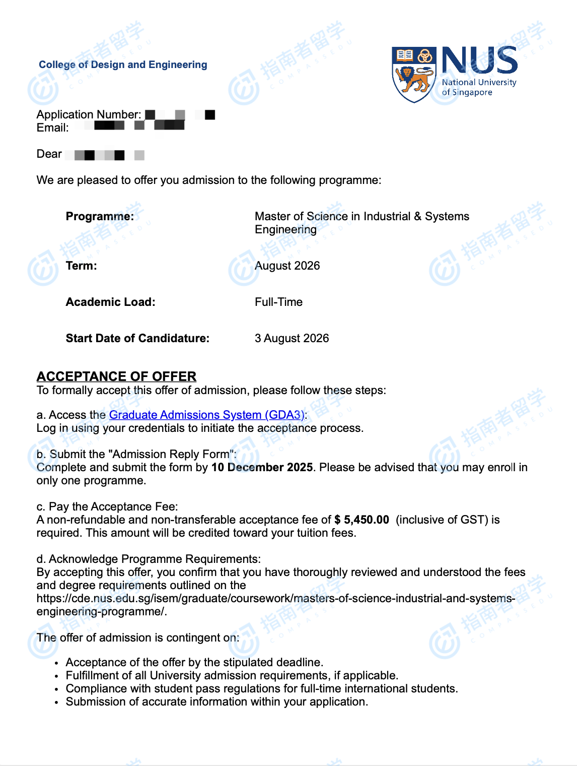 新加坡國立大學工業(yè)與系統(tǒng)工程理學碩士研究生offer一枚