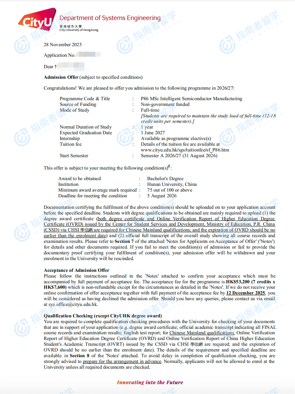 香港城市大學(xué)智能半導(dǎo)體制造理學(xué)碩士研究生offer一枚