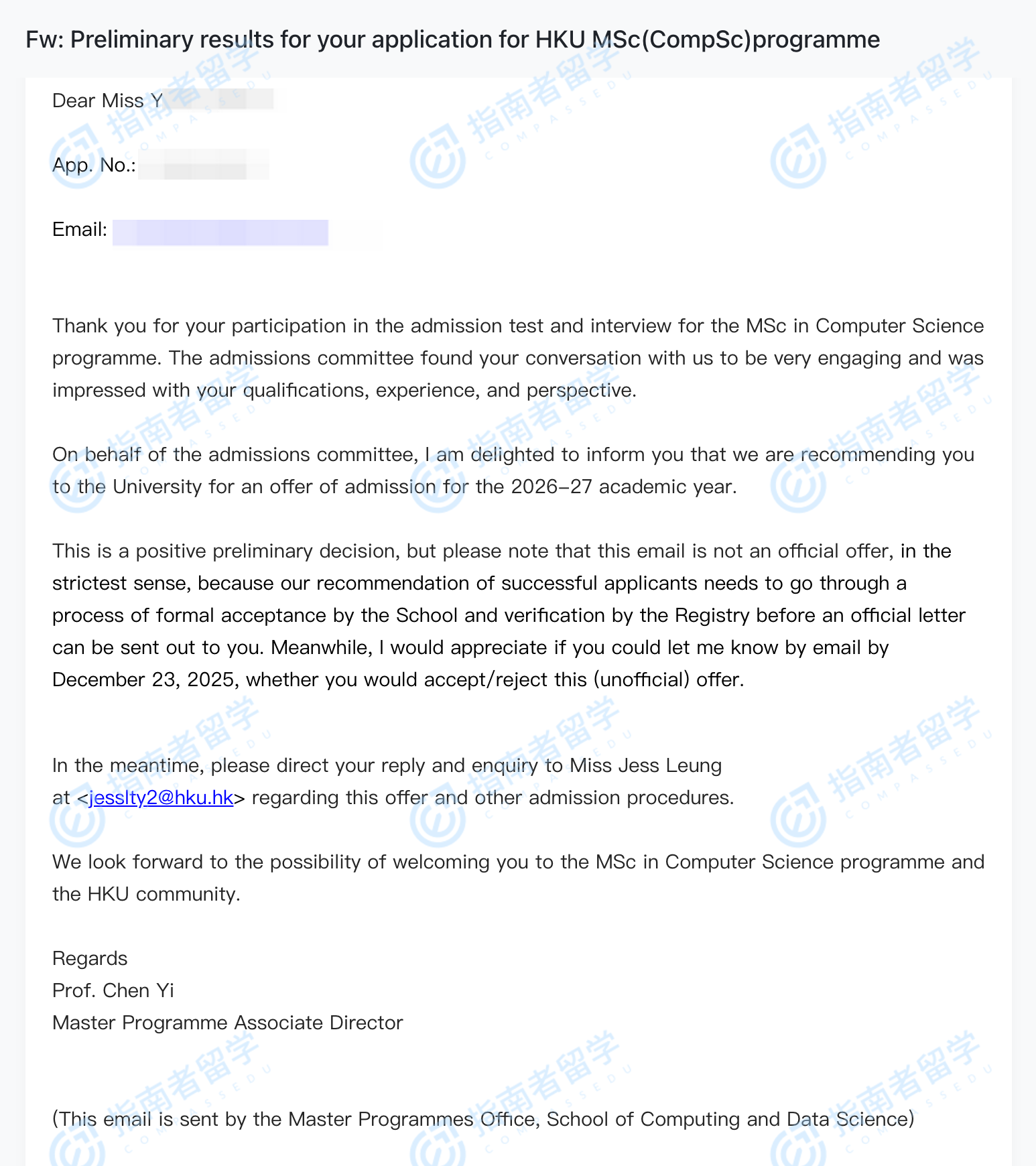香港大學(xué)計算機(jī)科學(xué)理學(xué)碩士(多媒體計算方向)研究生offer一枚