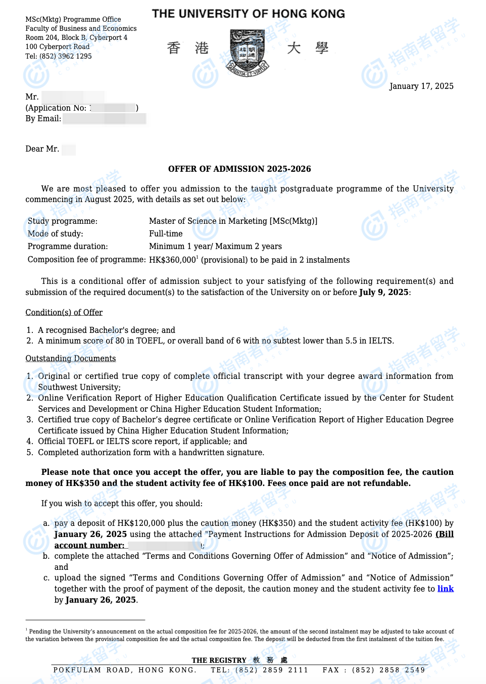 香港大學(xué)市場(chǎng)營(yíng)銷學(xué)理學(xué)碩士研究生offer一枚
