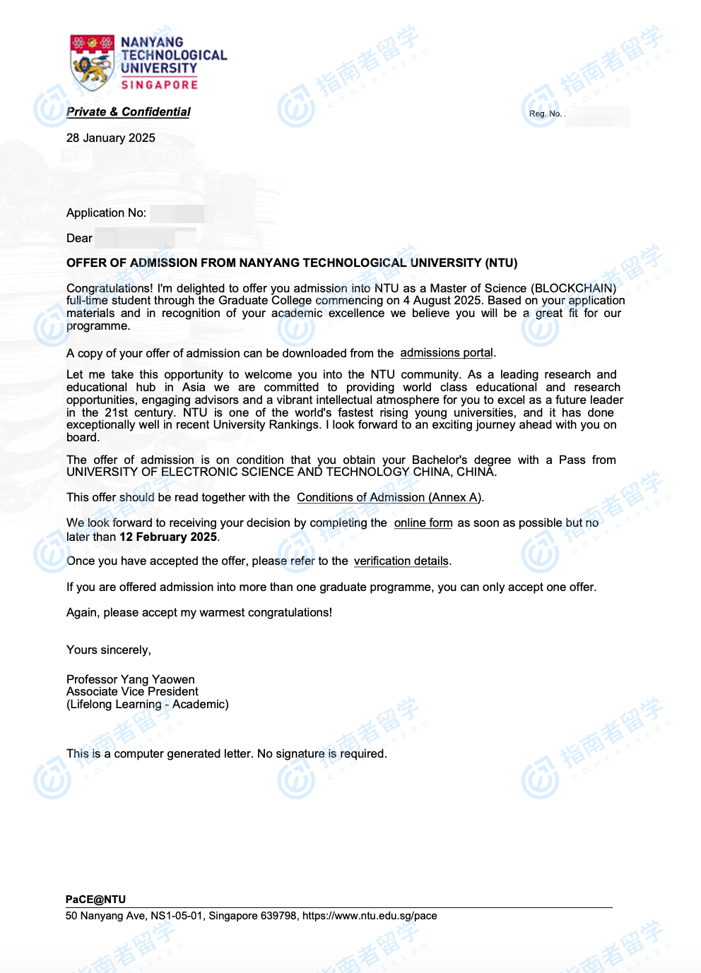南洋理工大學(xué)區(qū)塊鏈理學(xué)碩士研究生offer一枚