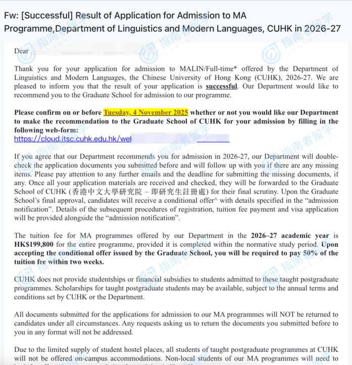香港中文大學(xué)語(yǔ)言學(xué)文學(xué)碩士研究生offer一枚