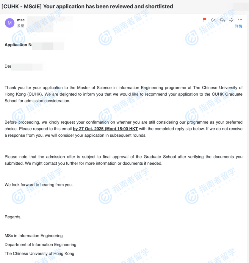 香港中文大學(xué)信息工程理學(xué)碩士研究生offer一枚