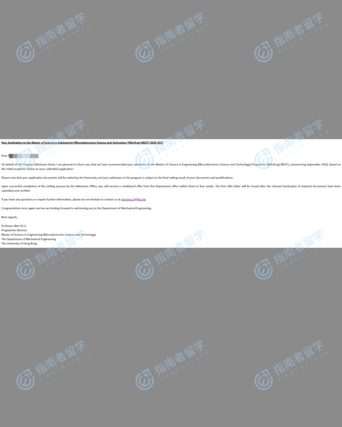 香港大學(xué)微電子科學(xué)與技術(shù)(工程)理學(xué)碩士研究生offer一枚