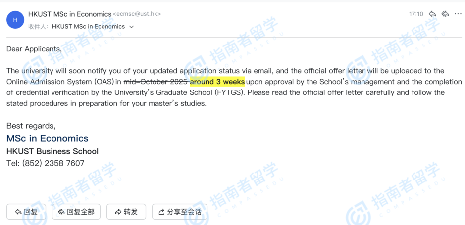 香港科技大學(xué)經(jīng)濟學(xué)理學(xué)碩士研究生offer一枚
