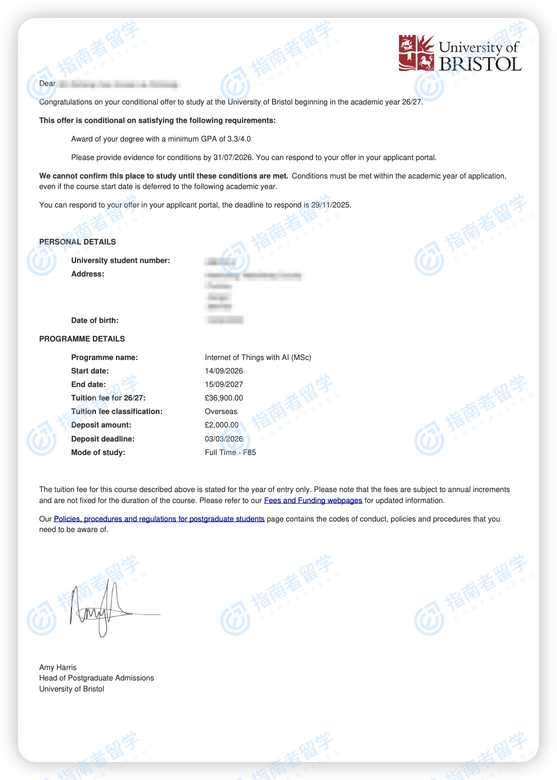 布里斯托大學物聯(lián)網與人工智能理學碩士研究生offer一枚