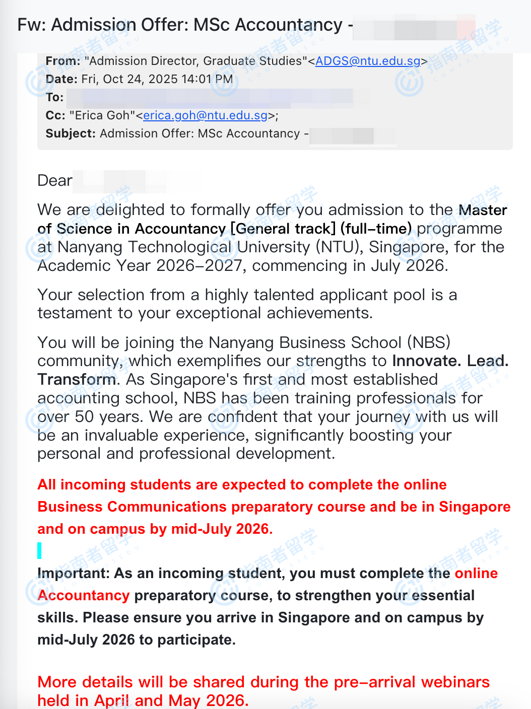 南洋理工大學(xué)會計學(xué)理學(xué)碩士研究生offer一枚