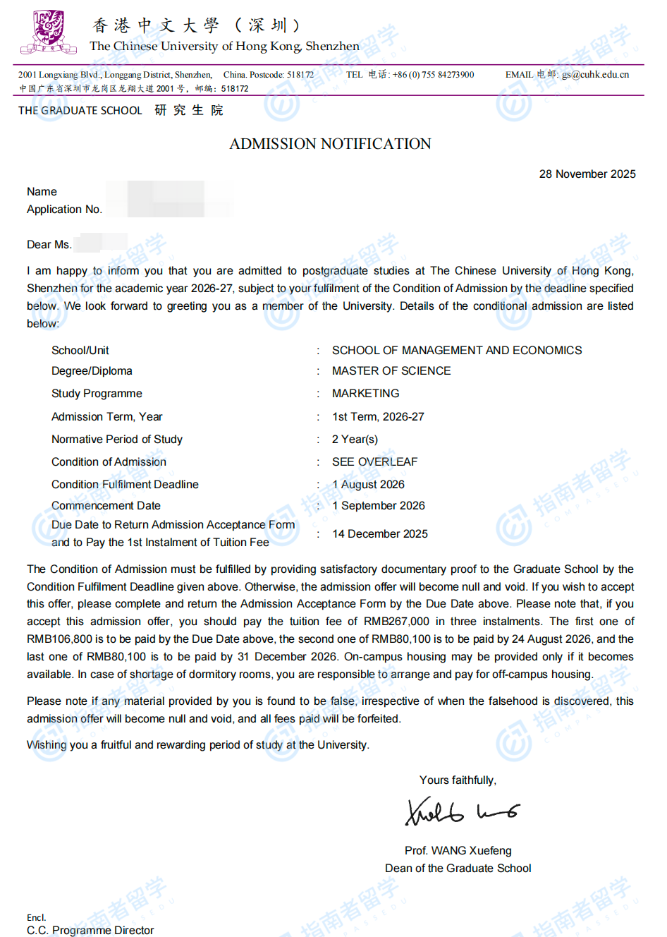 香港中文大學(xué)市場學(xué)理學(xué)碩士(CUHK-Shenzhen)研究生offer一枚