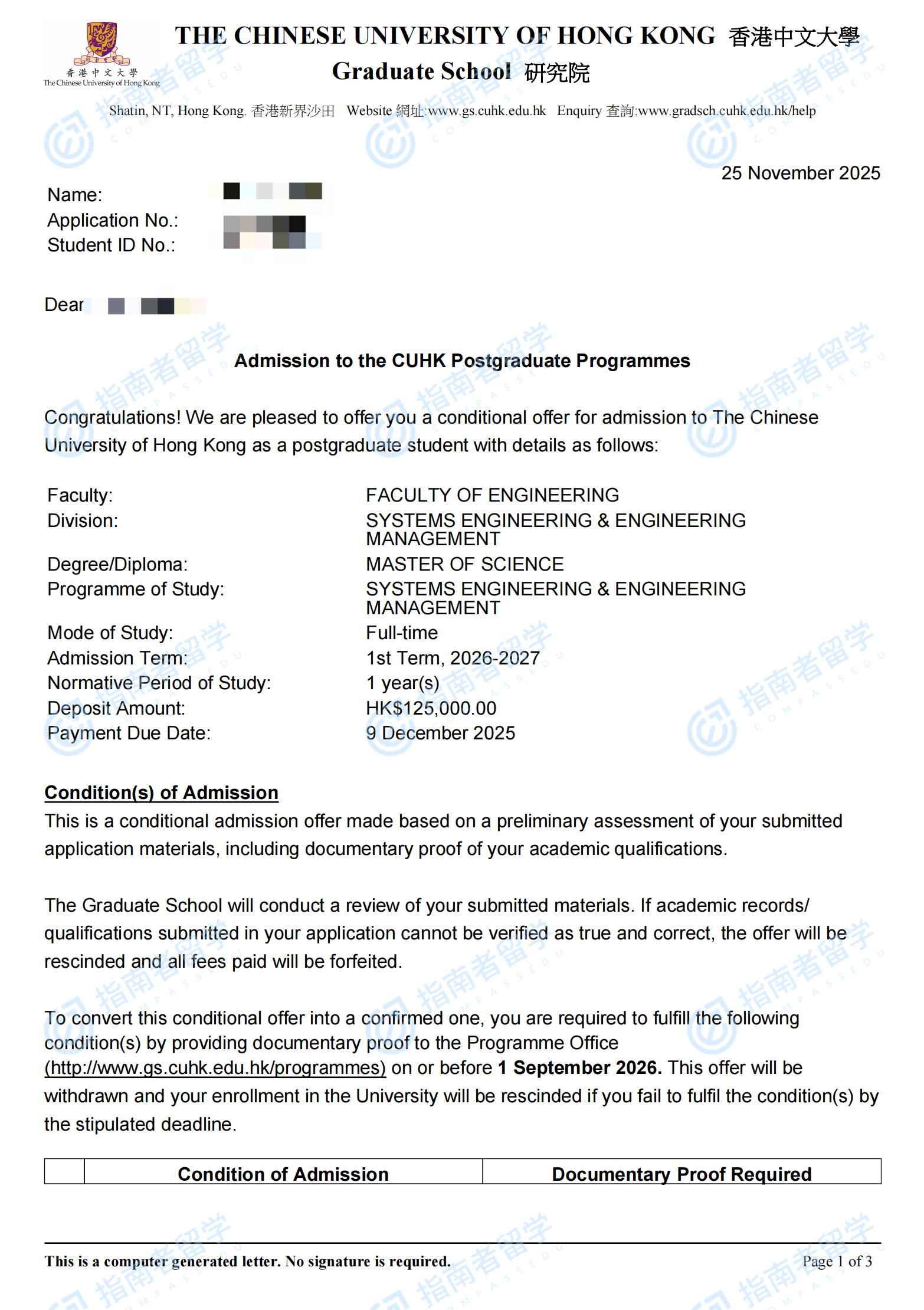 香港中文大學(xué)系統(tǒng)工程與工程管理理學(xué)碩士研究生offer一枚
