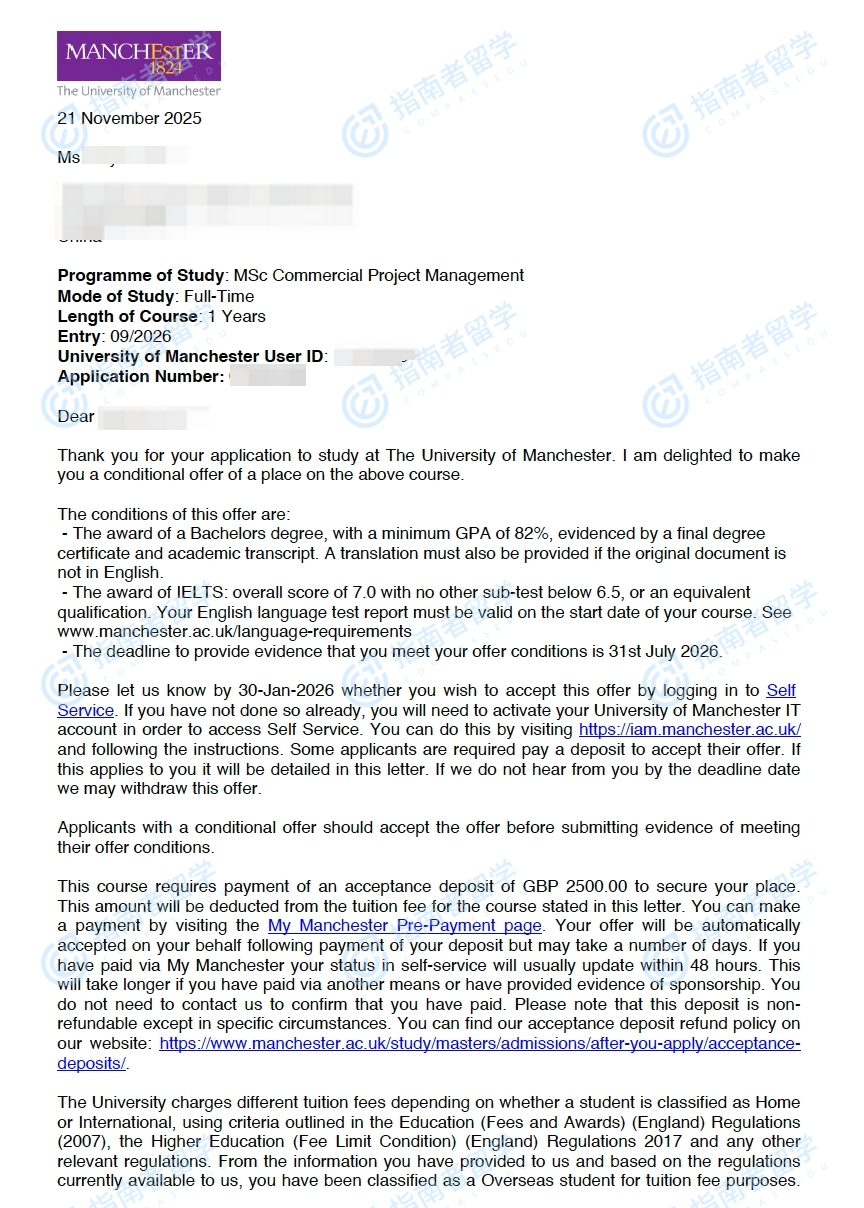 曼徹斯特大學(xué)商業(yè)項(xiàng)目管理理學(xué)碩士研究生offer一枚