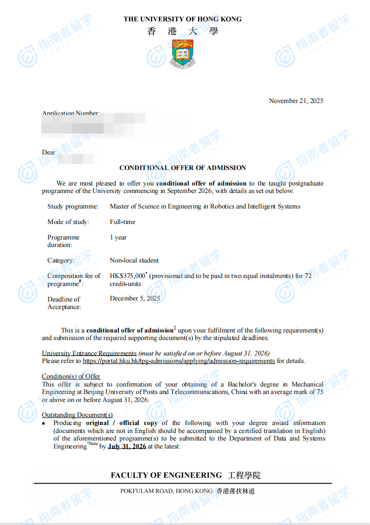 香港大學(xué)機(jī)器人與智能系統(tǒng)(工程)理學(xué)碩士研究生offer一枚