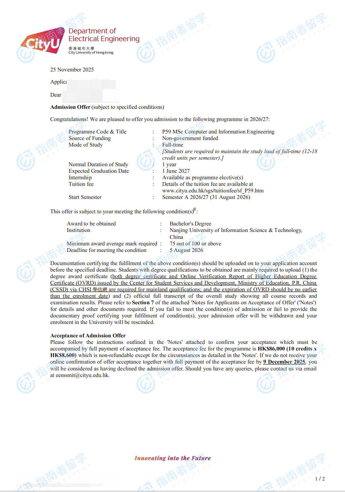 香港城市大學(xué)電子計算機(jī)與資訊工程理學(xué)碩士研究生offer一枚