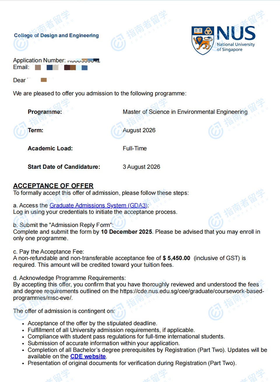 新加坡國立大學(xué)環(huán)境工程理學(xué)碩士研究生offer一枚