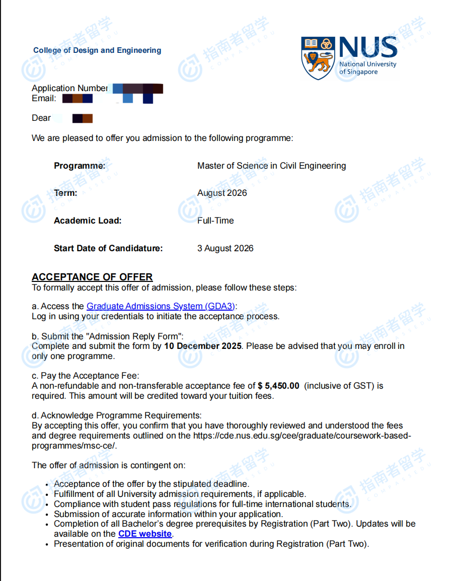 新加坡國(guó)立大學(xué)土木工程理學(xué)碩士研究生offer一枚