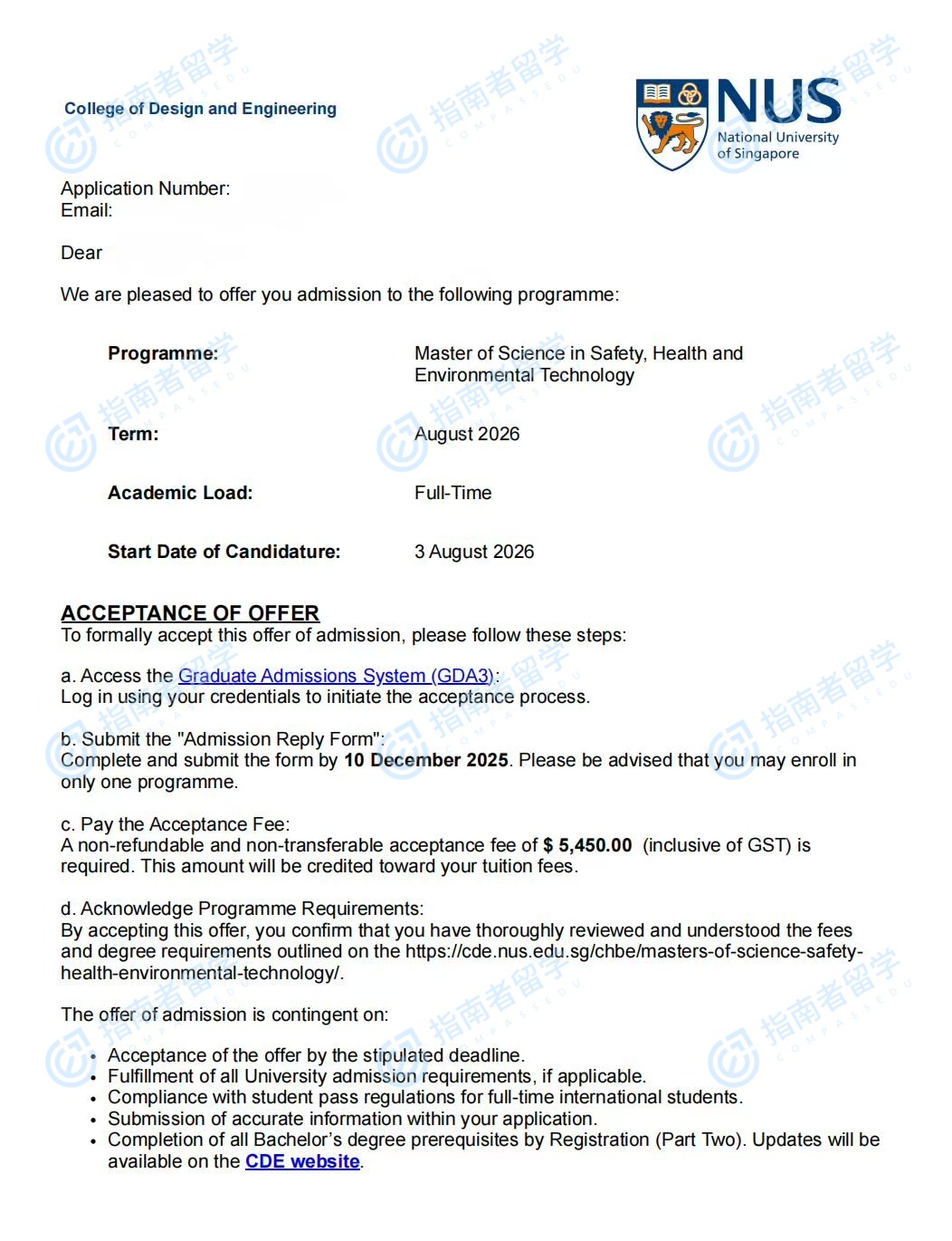 新加坡國立大學安全、健康與環(huán)境技術理學碩士研究生offer一枚