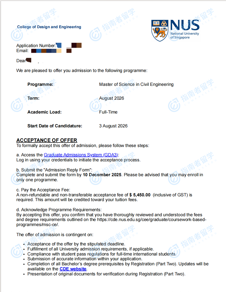 新加坡國立大學(xué)土木工程理學(xué)碩士研究生offer一枚
