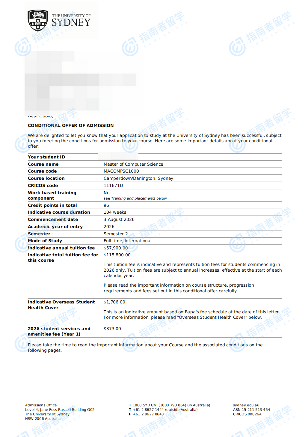 悉尼大學(xué)計算機科學(xué)碩士研究生offer一枚