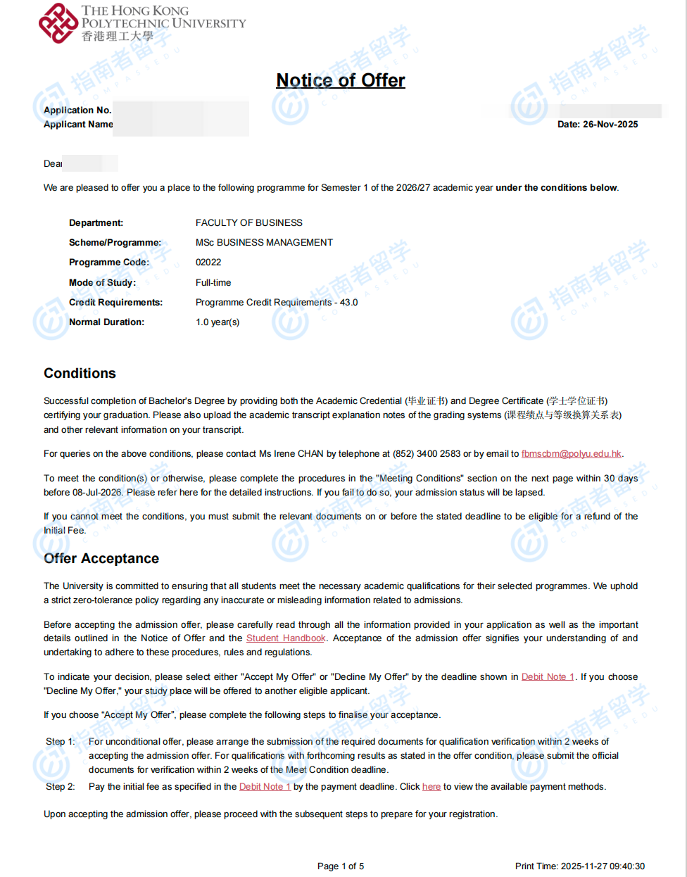 香港理工大學(xué)商業(yè)管理理學(xué)碩士研究生offer一枚