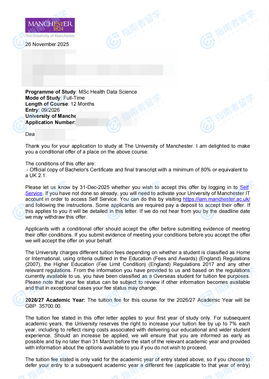曼徹斯特大學(xué)健康數(shù)據(jù)科學(xué)理學(xué)碩士研究生offer一枚