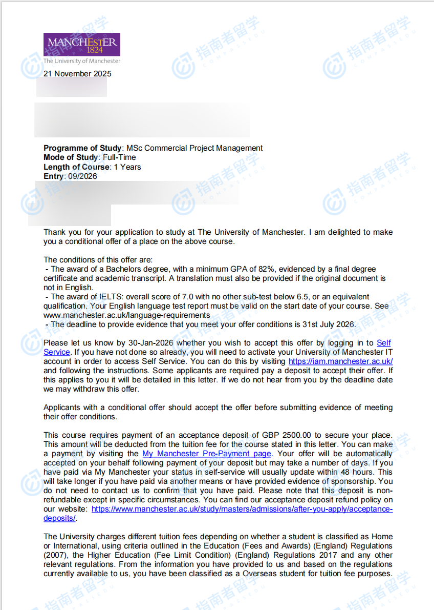 曼徹斯特大學(xué)商業(yè)項(xiàng)目管理理學(xué)碩士研究生offer一枚