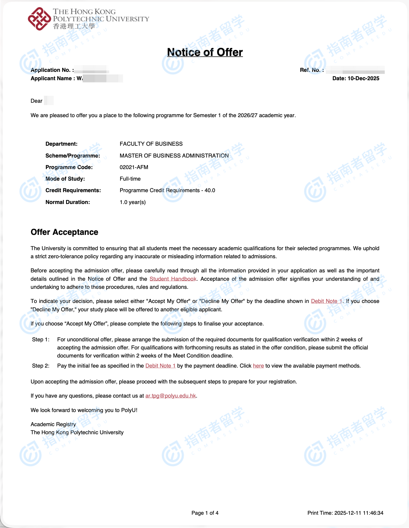 香港城市大學創(chuàng)新創(chuàng)業(yè)理學碩士研究生offer一枚