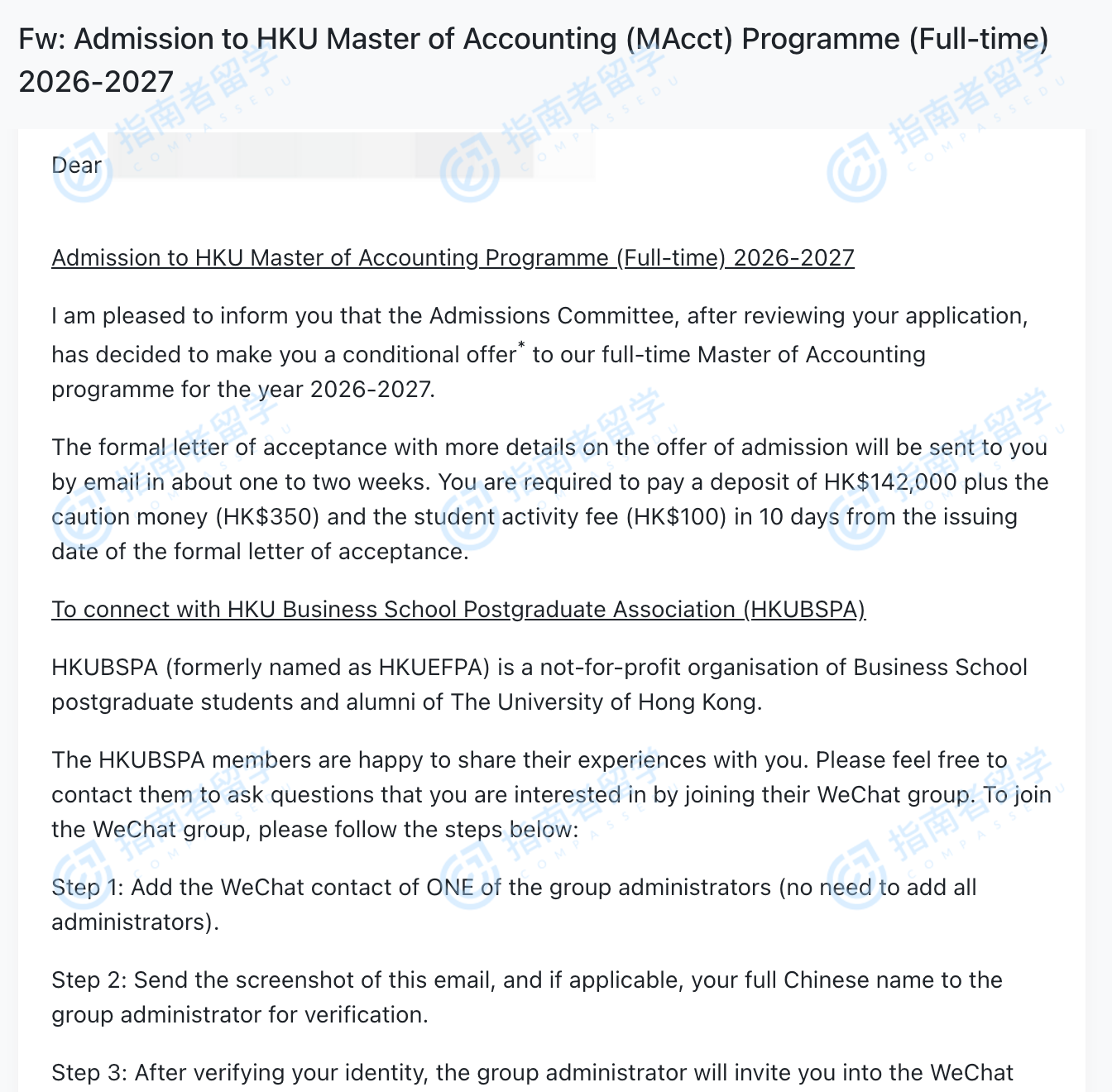 香港大學(xué)會(huì)計(jì)學(xué)碩士研究生offer一枚