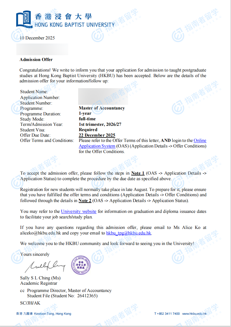 香港浸會(huì)大學(xué)會(huì)計(jì)學(xué)碩士研究生offer一枚