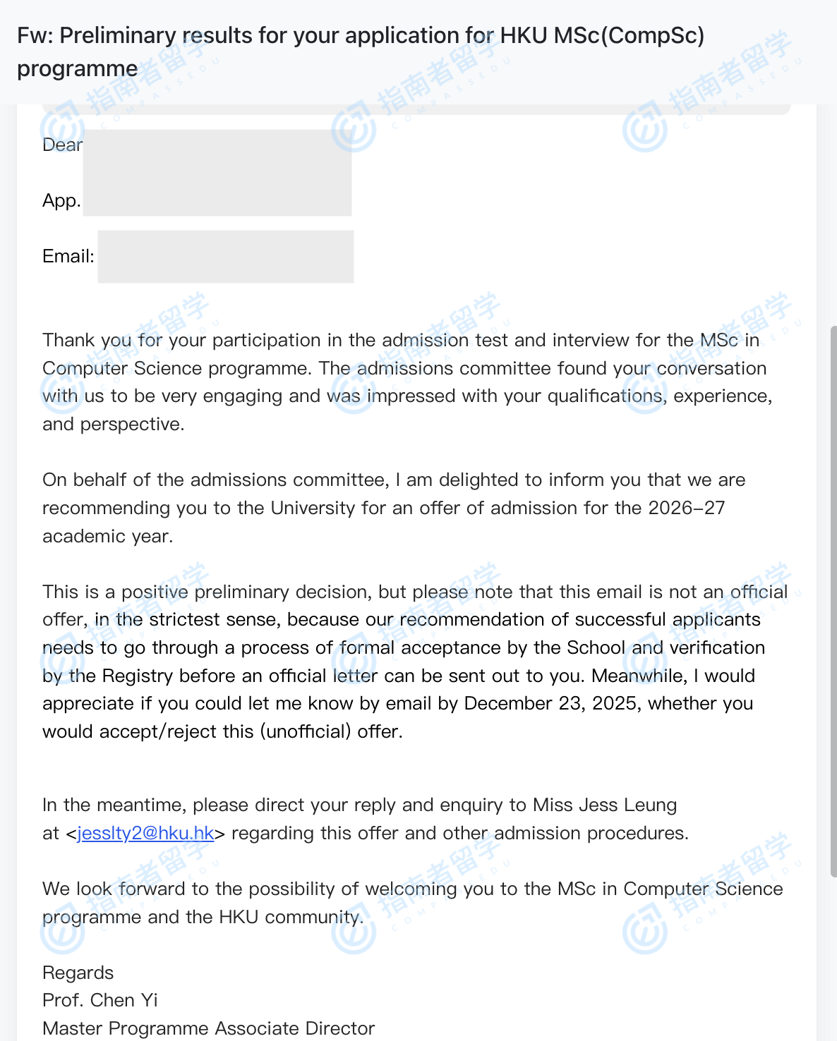 香港大學(xué)計(jì)算機(jī)科學(xué)理學(xué)碩士(多媒體計(jì)算方向)研究生offer一枚