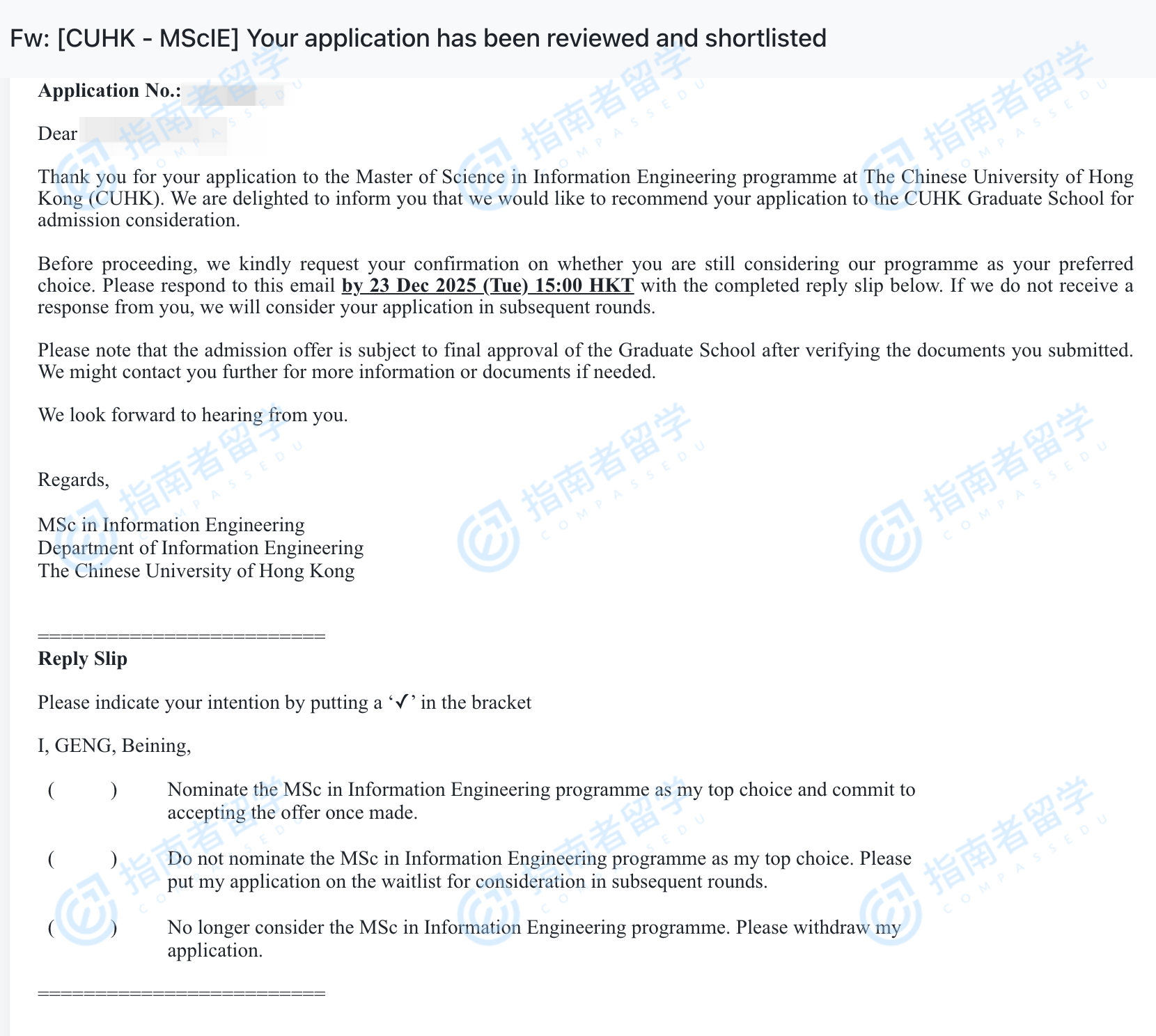 香港中文大學(xué)信息工程理學(xué)碩士研究生offer一枚
