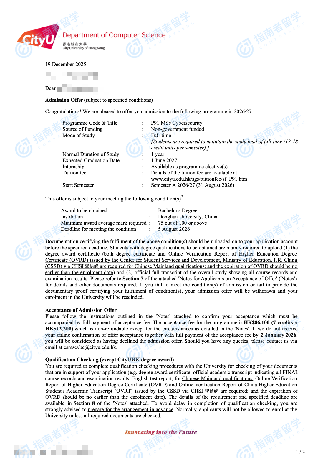 香港城市大學(xué)計(jì)算機(jī)科學(xué)理學(xué)碩士研究生offer一枚