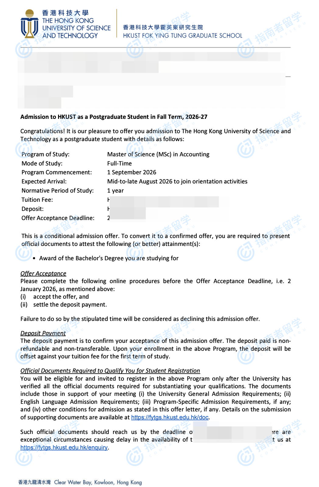 香港科技大學(xué)會計學(xué)理學(xué)碩士研究生offer一枚