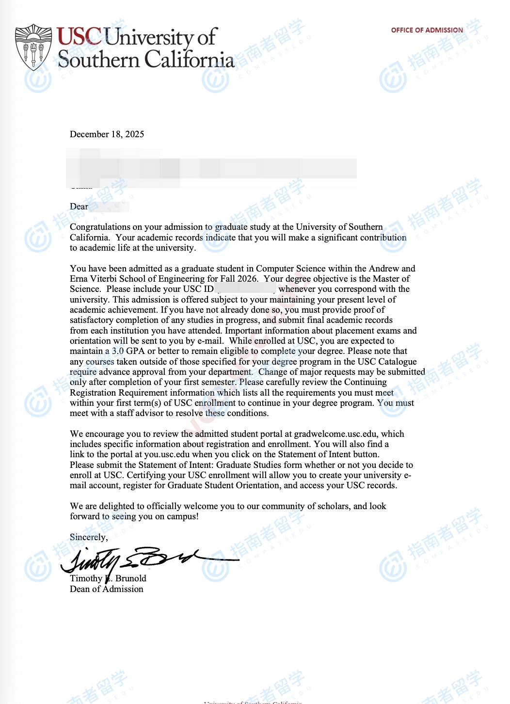 南加州大學(xué)計(jì)算機(jī)科學(xué)碩士研究生offer一枚